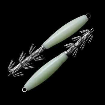 Anzuelo de calamar de plástico luminoso grande para pesca en el mar, camarones suaves y tubo de soplado para anzuelo de pez con Base de madera de carpa